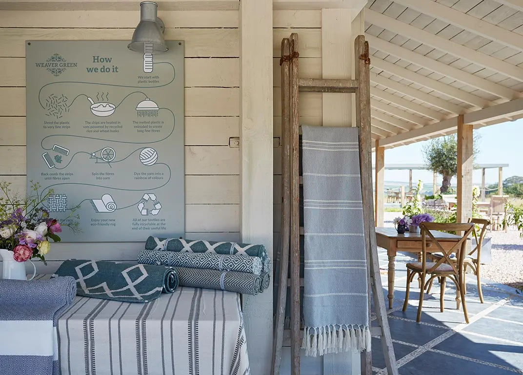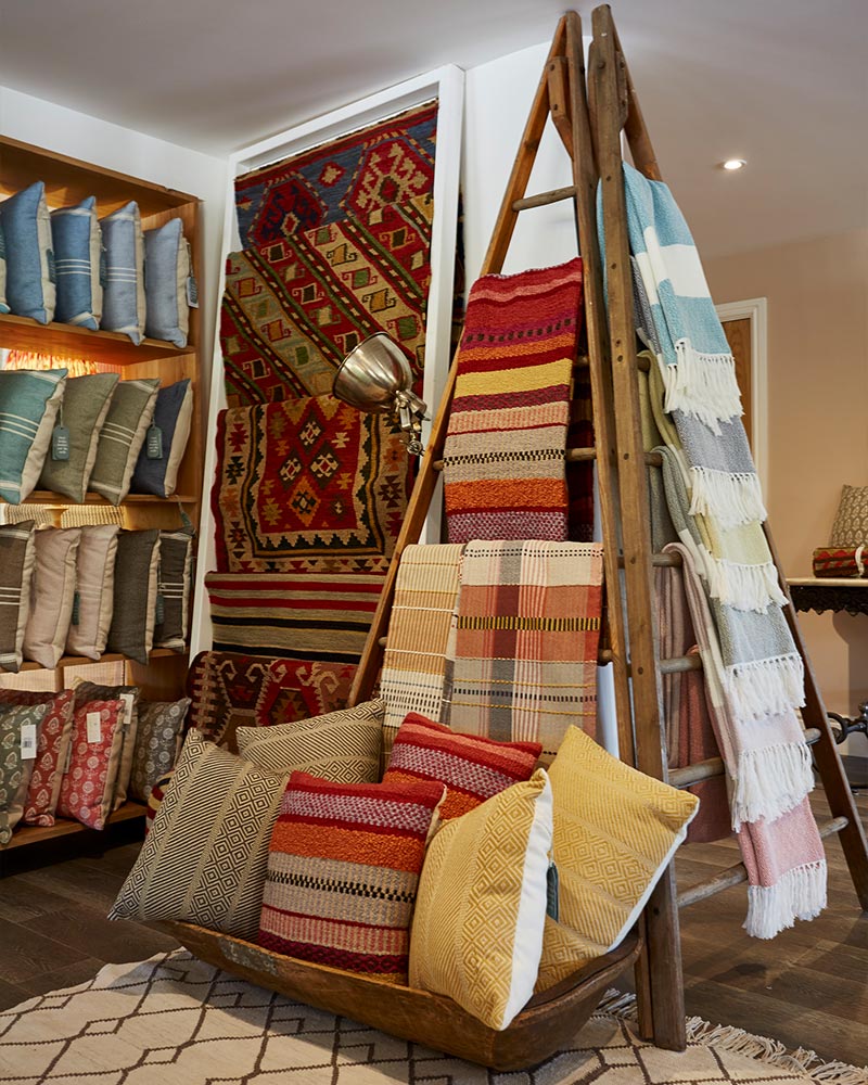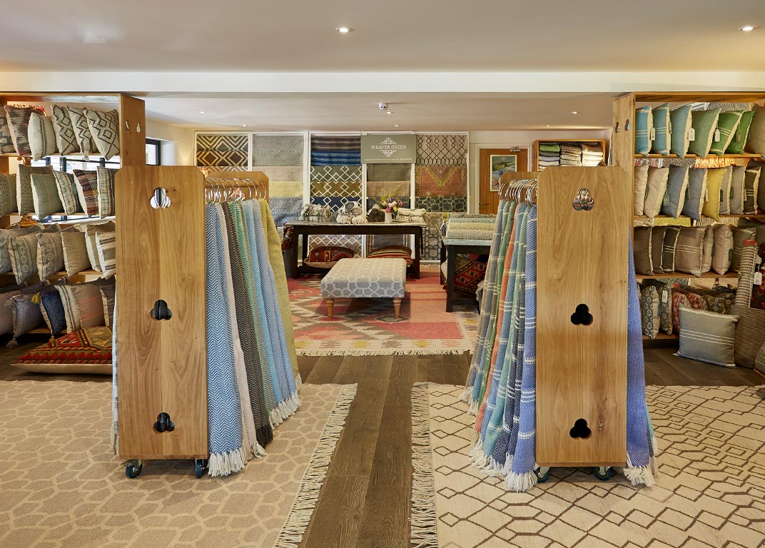 Our wonderful new showroom sits in the heart of the Heron Valley apple orchards. Lovingly created by the team here at Weaver Green, we've built a peaceful spot for customers to browse our full collection of rugs, blankets, cushions and textiles.