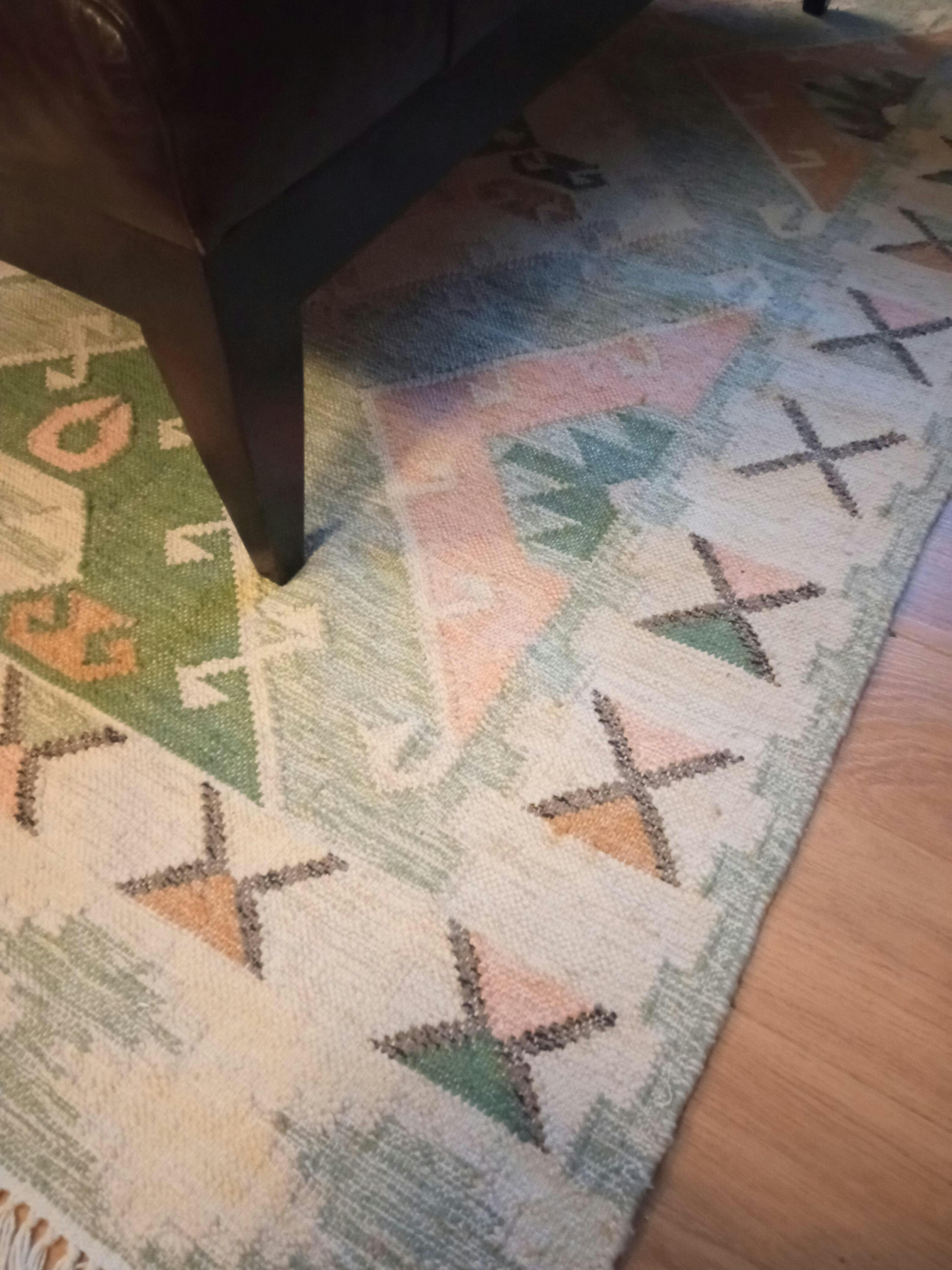 Either hand wash with a light detergent or pop smaller rugs (up to the size 180cm x 120cm) into the washing machine on a 30-40 degree cycle using a non-bio washing detergent.