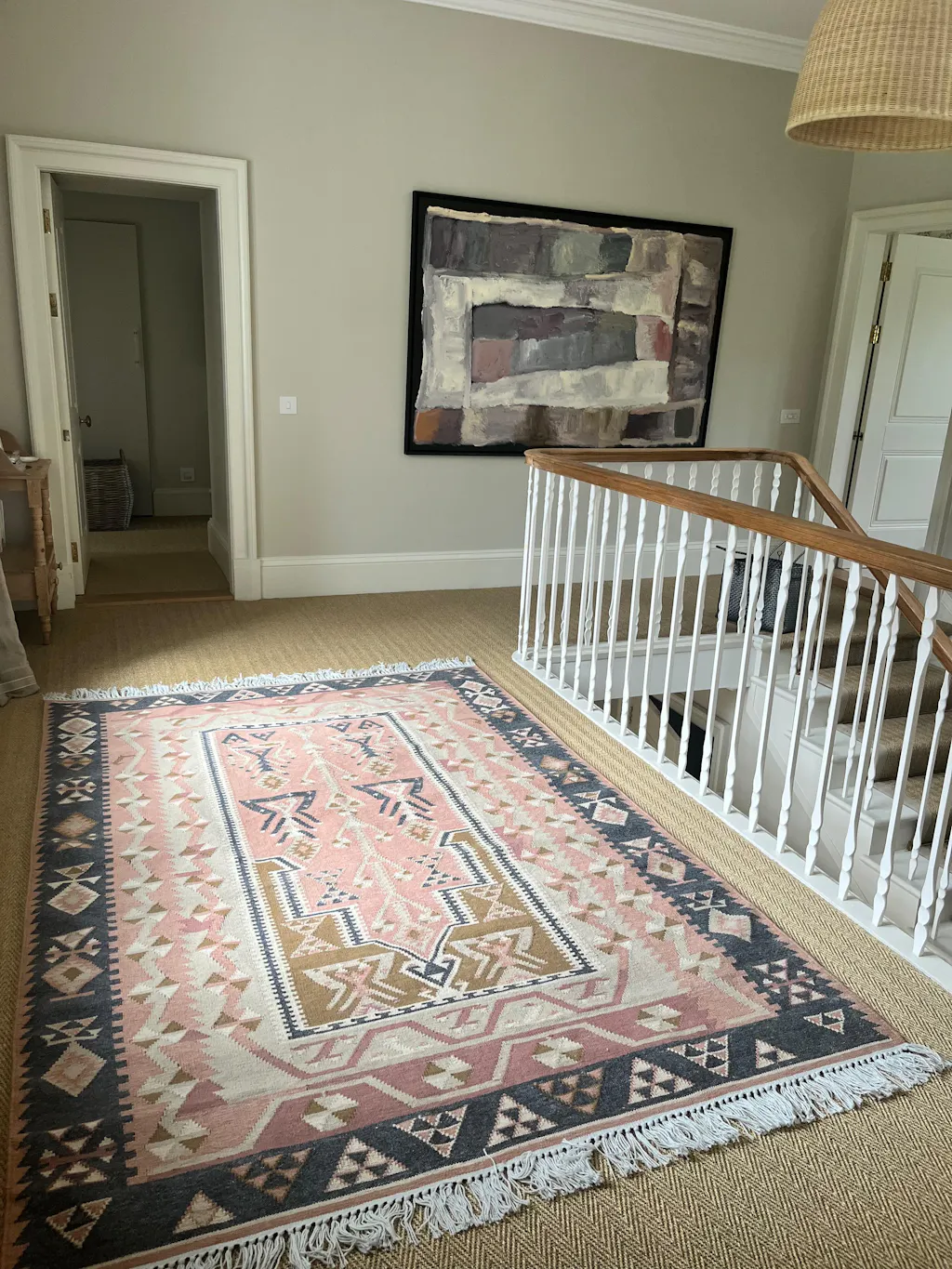 Featuring our most intricate kilim design, its perfectly faded tones of antique pink, olive green and charcoal give it the character of an original wool kilim – just gorgeous, wherever you put it.