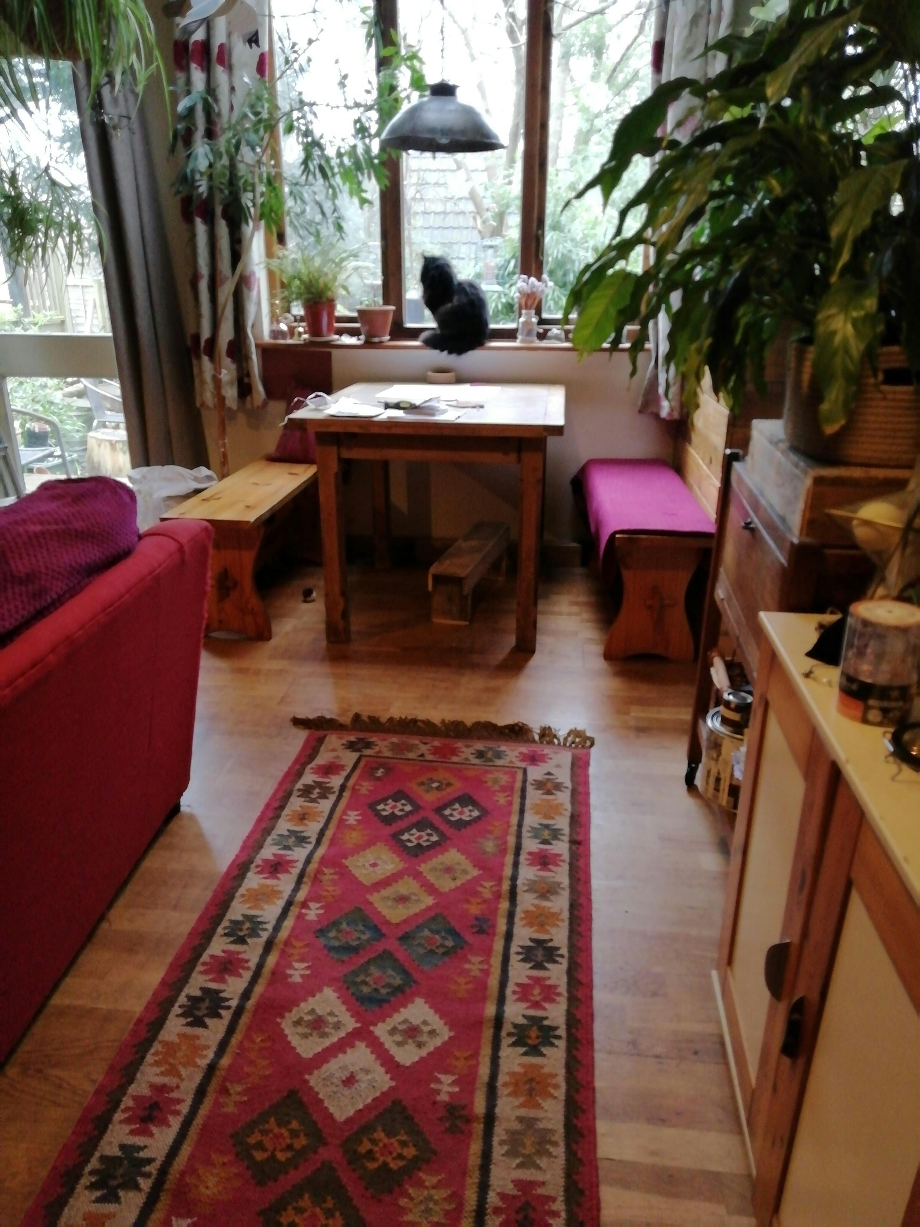 Rugs can be spot cleaned for smaller marks but every now and then will need a more thorough wash. Rugs up to 180x120cm can usually fit in a domestic washing machine but for a larger one, it will be better to try a large drum at the laundrette with the same washing instructions (maximum temperature of 40°C, non-bio liquid detergent). If this capacity is still not large enough, you can do what we sometimes do with ours which is wash outside by hand with a bucket of warm water and detergent in, and hose to rinse. If you pick a sunny day and can hang the rug up, it will dry quite quickly.
